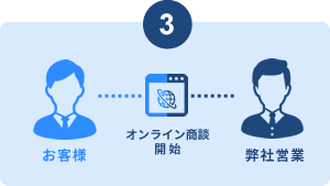 商談の時間になりましたら、ご招待メールのURLリンクよりオンライン商談ルームへお進み商談開始となります。